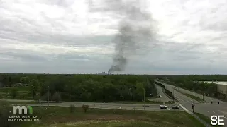 A MnDOT traffic camera near Interstate 94 and County Road 81 captured a plume of heavy smoke rising from the area around noon. A wide area was blocked to traffic while crews responded.